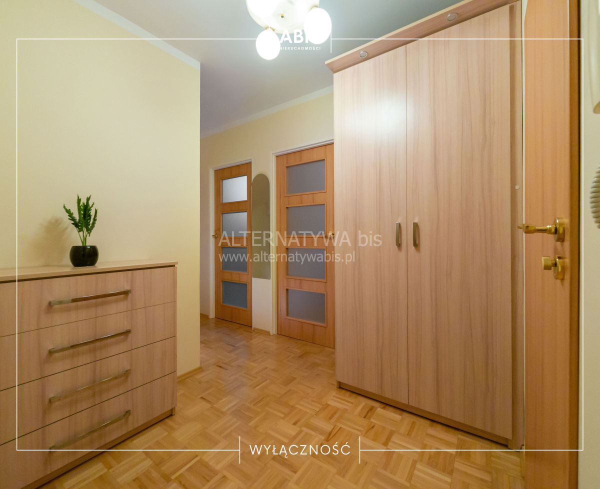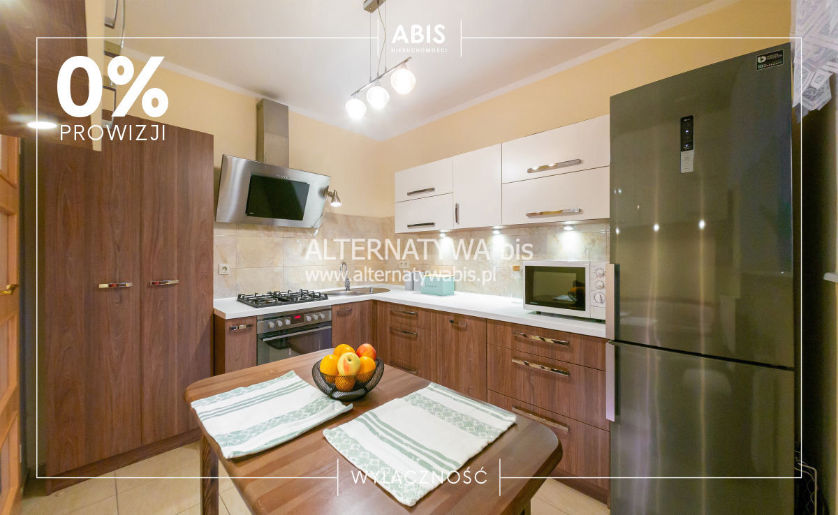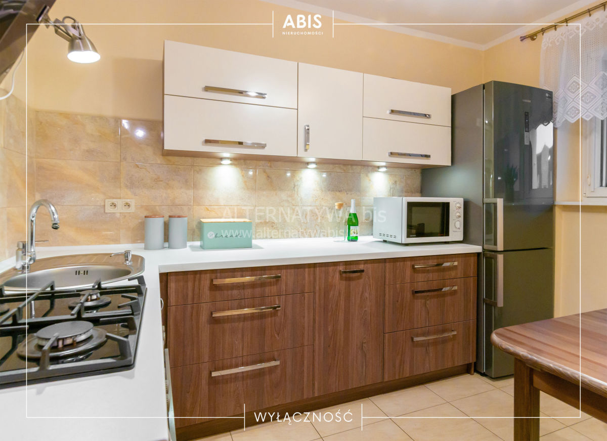 Mieszkanie kompleksowo wyremontowane, w pełni umeblowane i wyposażone -gotowe do zamieszkania. Duża kuchnia wyposażona w nowszą zabudowę kuchenną, zmywarkę*40, płytę gazową, piekarnik, okap, stół. Na podłodze w pokojach i w korytarzu parkiet bukowy (w bardzo dobrym stanie). W łazience płytki , prysznic, szafka z umywalką, zabudowane szafki oraz pralka. W korytarzu szafa zrobiona na `wymiar` oraz komoda. W mniejszym pokoju duża zabudowana szafa typu `komandor`. Oddzielna WC z umywalką. Okna PCV z ekspozycją wschodnią i zachodnią. Ogrzewanie z sieci miejskiej. Ściany gładź.