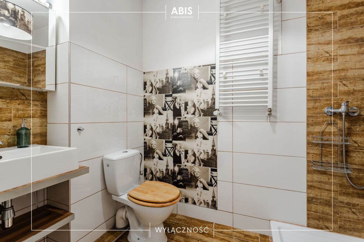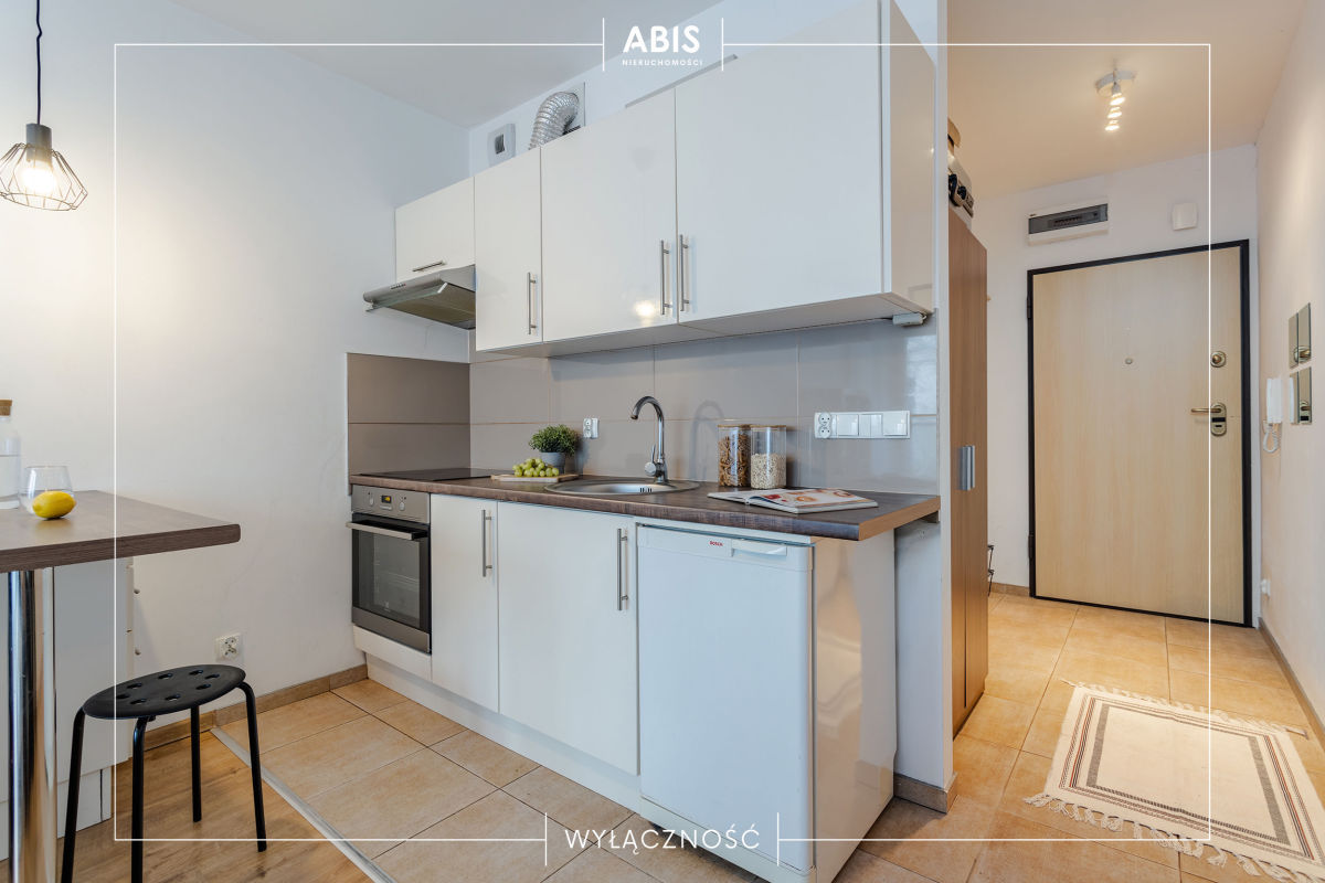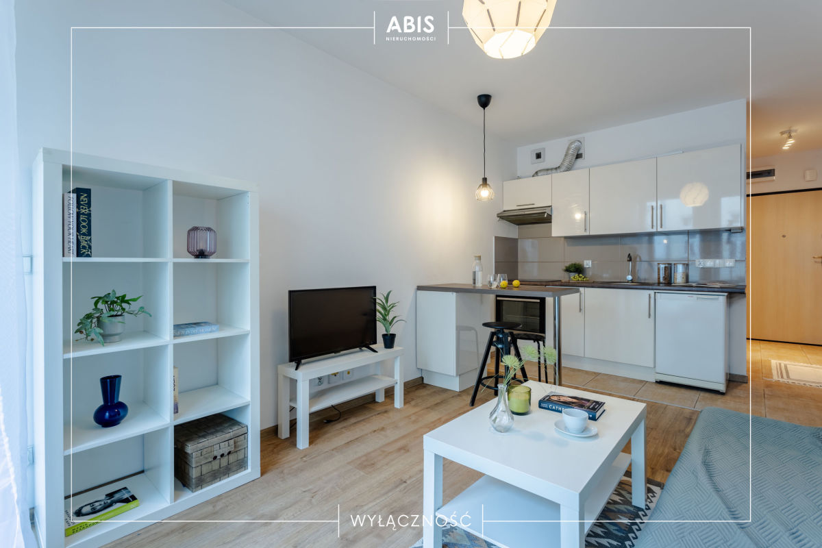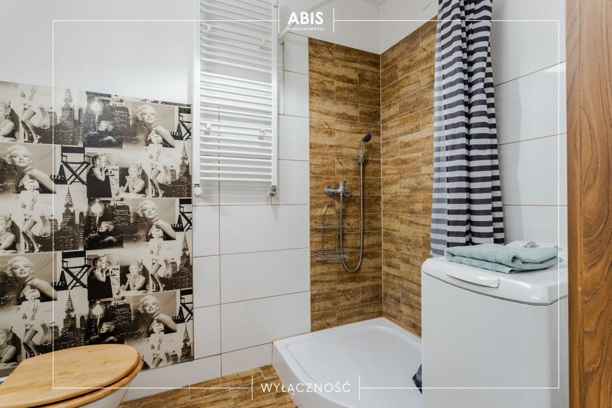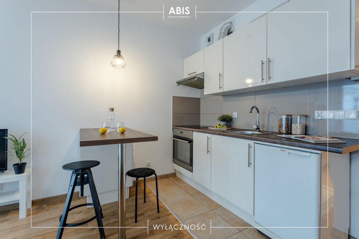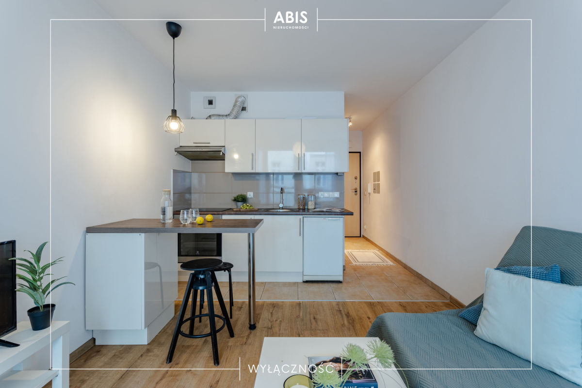 Mieszkanie jasne, ponieważ cała ściana frontowa jest przeszklona. Na podłodze w aneksie kuchennym są płytki, w pokoju panele. Łazienka w płytkach z prysznicem, umywalką oraz pralką. Kuchnia umeblowana wyposażona w szafki kuchenne IKEA, płytę, piekarnik, lodówkę oraz okap. W pokoju kanapa rozkładana, stolik, 2 komody. W przedpokoju znajduje się szafa. Okna PCV. Ogrzewanie miejskie.
