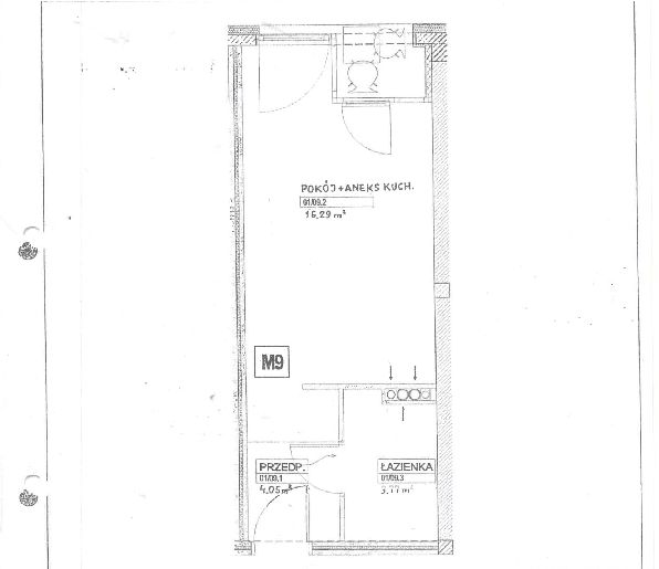 # pokoju z aneksem kuchennym 16.29 m2
