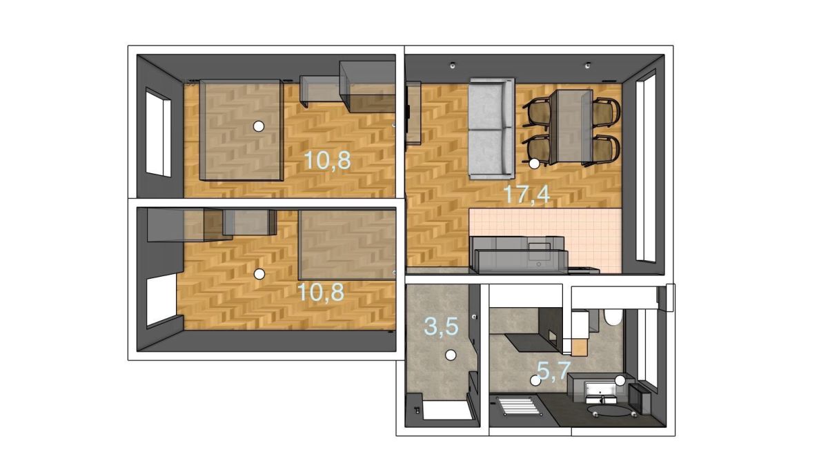 Mieszkanie o powierzchni 48,3m2 składa się z: