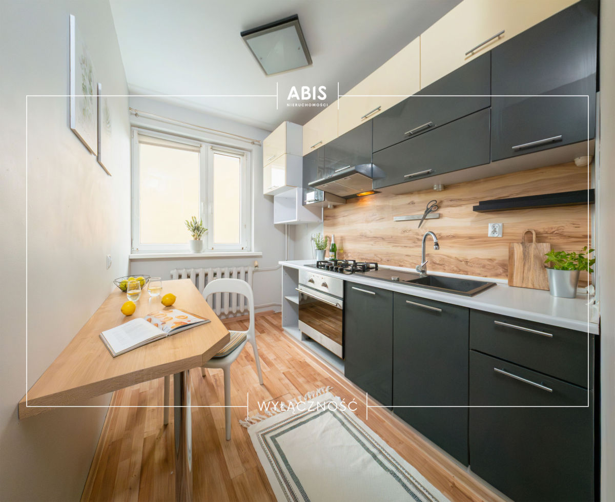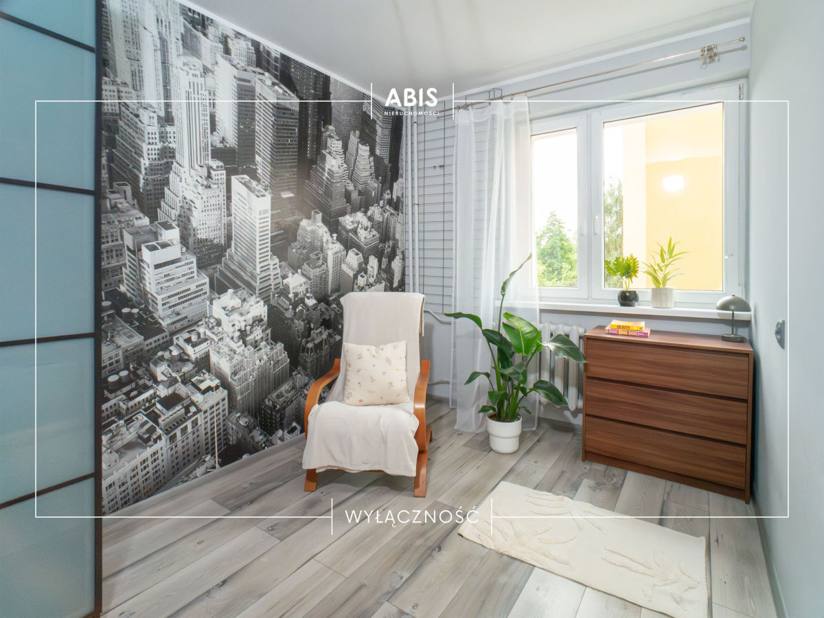 Na podłodze w pokojach oraz w kuchni są panele. W korytarzu oraz w łazience są płytki. Łazienka w płytkach z prysznicem i WC. Kuchnia umeblowana, wyposażona w zabudowę kuchenną, płytę gazową, piekarnik, okap, stół. W salonie są kanapa, 2 szafy, 2 półki stojące, stolik, komoda RTV. W sypialni znajduje się funkcjonalna szafa, komoda, fotel. Pokój dziecięcy wyposażony w szafę, łóżeczko, stolik dziecięcy z 2 małymi krzesełkami, komodę. W korytarzu są dwie duże zabudowane szafy oraz wieszak na ubrania. Okna PCV. Ogrzewanie miejskie.