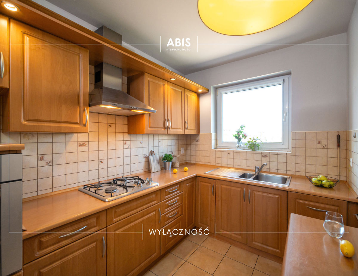 - kuchnia w zabudowie, wyposażona w niezbędne sprzęty AGD: piekarnik, lodówkę, zmywarkę oraz płytę gazową.